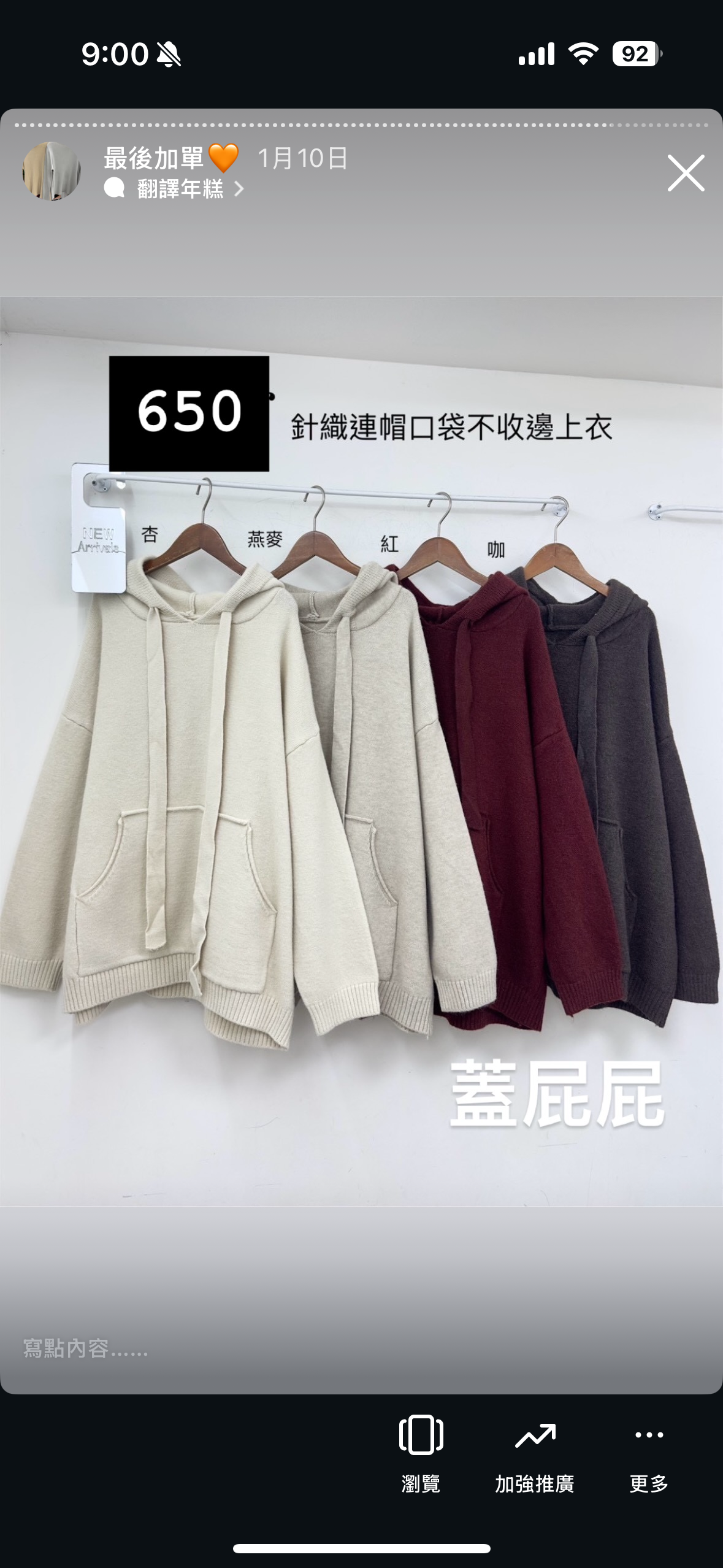 蓋屁屁連帽針織 咖 數量